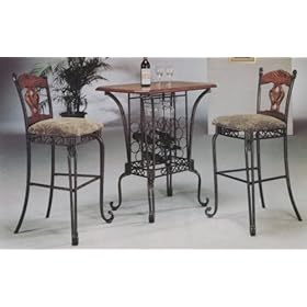 Click Here to see more reviews about: 3 PIECE BAR TABLE SET WITH WINE RACK BASE - Bar Table and 2 Bar Chairs