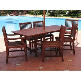 A celebration of beauty, this set becomes a natural part of your patio or deck. Crafted from tropical Dark Selunsar wood, the natural wood is enhanced with an oil-based stain. Maintain original appearance by applying a linseed oil, or allow pieces to weather naturally and turn a silver gray. The tropical hardwood adds style and durability to the piece, and is also a mild insect repellent. This set comes with 2 Captains chairs, 4 side Chairs, and an extendable Table. With this set, you have the option to create your look by choosing the seating option that best suits your dining needs. SOME ASSEMBLY - CUSHIONS SOLD SEPARATELY