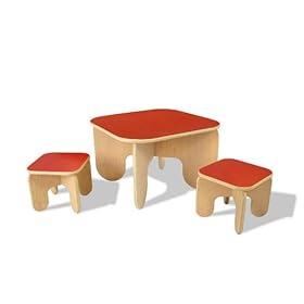 What is your favorite popsicle flavor??Noticing that no two toddlers sit the same way was the inspiration for the colorful and eco-friendly PopsicleKids Project Table and Stool Set.It is the perfect height for sitting, standing or kneeling.Also, their patented no-tools assembly method will ensure that mom or dad do not spend all afternoon assembling it. Each stool nests neatly underneath the table and out of the way when not in use.A perfect for any playroom, family room or kids bedroom. Constructed from 100% formaldehyde-free, FSC Certified real wood and features a durable, 100% non-toxic water-based finish. Table Size: 25. 85" x 25. 85" x 16. 75"Stool Size: 11. 8" x 11. 8" x 10. 25"Color: Cherry/Clear Ages 2 and up