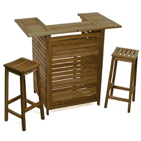 Made of non-endangered tropical Kapur hardwood, this compact bar weathers to a beautiful silver-gray finish. Outdoors, you'll set up for casual evenings by the pool or on your patio; indoors, it's a welcome addition to your family room. The back of the bar is open, providing easy access to two shelves;1 top shelf for use as a counter (with a sink/ice tray) and a second lower shelf for storing glassware, ice buckets, and other essentials, and there's a bottom rack for six bottles of wine. Assembly required. 46"W x 42-1/2"H x 27"D. A word about Kapur Hardwood: Kapur wood is a high-density Southeast Asian hardwood with excellent weather-resistant properties. Light enough to move easily around deck or lawn, kapur requires no finishing and is exceptionally-sturdy--with enough oil to repel the ravages of rain, sun, and dew. Left untreated, Kapur will weather to a soft warm shade of gray similar to the weathering of teak. If you prefer to prevent this weathering process, you may apply additional coats of teak oil. The frequency of necessary teak oil applications will depend on the intensity of the sun in your environment, but typically, one or two coats per year is sufficient. If you allow your furniture to weather, you may later decide that you would want to restore it to its original condition. This is possible by using teak cleaner products. After following the instructions for cleaning, you will want to apply a coat of teak oil to prevent the weathering process.