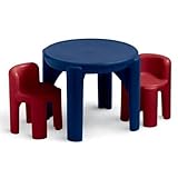 Little Tikes Table & Chairs Kids feel like grown-ups at this Little Tikes Table and Chairs set. The light blue and yellow colors coordinate with any bedroom, playroom or kitchen. Your little ones will find the perfect place for eating, playing school or arts and crafts. Moms seem to enjoy its easy to clean surfaces. A featured plus, is that the table and two chairs come ready-assembled for immediate play action.