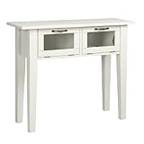 Add that country feel to your home with a table, which features solid hardwood tops and frames of kiln-dried lumber with a distressed, warm walnut finish.Drop down glass doors for easy storage display.