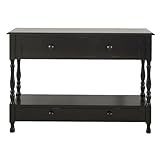 Lathe-turned details for a classic American style.Built on a solid pine frame with a gorgeous black finish.Two wide drawers for silverware and table settings.Assembly required.
